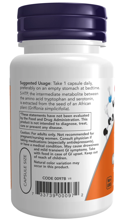 NOW Foods – 5-HTP to suplement diety zawierający 50 mg naturalnego związku 5-hydroksytryptofanu w każdej kapsułce roślinnej. Produkt ten został zaprojektowany, aby wspierać zdrowy styl życia i może być częścią Twojej codziennej rutyny dla ogólnego dobrego samopoczucia.