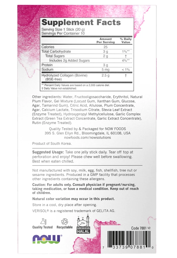Tøv ikke med at prøve NOW Foods – Collagen Jelly Beauty Complex, Sweet Plum! Oplev den lækre smag og de praktiske jelly sticks selv – dit nye yndlingssnackvalg venter på dig!