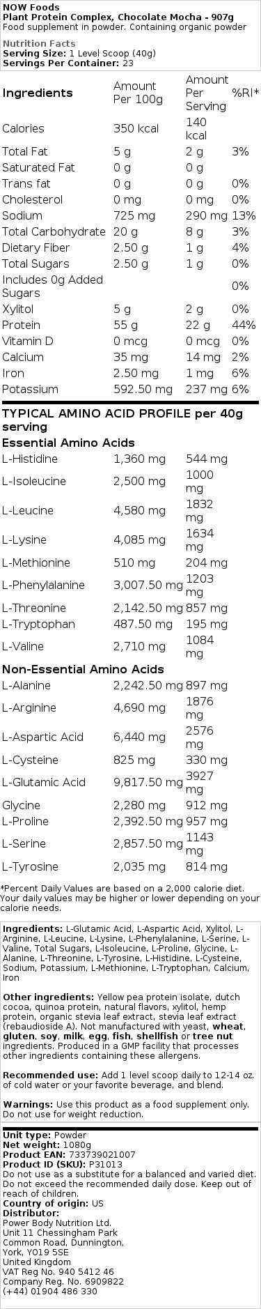 Białka roślinne dobrze sprawdzają się jako zamienniki bardziej powszechnych białek mleka, takich jak serwatka i kazeina, których powinny unikać niektóre osoby z nietolerancją laktozy lub prowadzące wegański tryb życia i nie mogące spożywać białek pochodzenia zwierzęcego. Ten kompleks białek roślinnych firmy NOW Foods zawiera wysokiej jakości mieszankę izolatu białka grochu, białka konopi i białka komosy ryżowej, aby zapewnić szereg ważnych niezbędnych aminokwasów, które przyczyniają się do optymalnej naprawy i wzrostu mięśni. W przeszłości stosowałem wiele różnych proszków białkowych lat, a niektóre z oryginalnych białek roślinnych były bardzo trudne do wymieszania i nie miały przyjemnego smaku, przez co bardzo trudno było je regularnie pić, ta wersja od NOW Foods jest znacznie ładniejsza, łatwo miesza się z wodą i ma przyjemny smak o smaku Kremowej Wanilii, dzięki czemu świetnie sprawdzi się jako zwykła codzienna odżywka białkowa. Aby uzyskać przyjemniejszy smak koktajli białkowych, polecam zmieszać je z mlekiem migdałowym Alpro, które ma niską zawartość kalorii, więc idealnie nadaje się do stosowania w różnych fazach diety odchudzającej i fazach przyrostu beztłuszczowej masy ciała. Jest to najwyższej klasy białko roślinne, które dobrze sprawdza się w zaspokajaniu docelowego zapotrzebowania na białko w szeregu różnych celów związanych z poprawą sylwetki i wydajności. Ma również niską zawartość tłuszczu i cukru, co sprawia, że świetnie nadaje się do stosowania podczas faz intensywnej diety odchudzającej, tj. również uważam, że białka roślinne są łatwiejsze dla mojego układu trawiennego i uważam, że ważna jest zmiana źródeł białka w ciągu roku, aby móc robić postępy w zdobywaniu większej masy mięśniowej i zapobiegać przyzwyczajaniu się organizmu do tych samych źródeł białka. Jeśli szukasz najwyższej klasy białka roślinnego, które wspomoże Twoje docelowe spożycie białka, polecam wybrać Plant Protein Complex jako jeden z najlepszych na rynku. Polecam również wybranie Creamy Vanilla Flavour jako jednego z najpiękniejszych i najłatwiejszych do spożycia spożywaj bez nudy lub mdłości. Uważam również, że jest to łagodny smak, więc do koktajli można dodać różne owoce, aby jeszcze bardziej poprawić smak, jeśli chcesz.