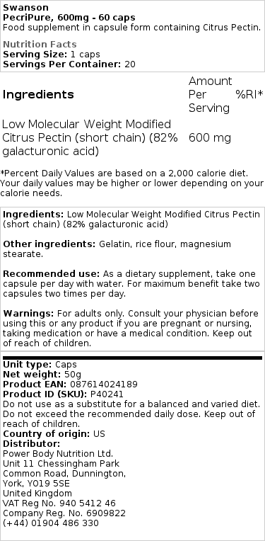 Swanson – PectiPure, 600mg – 60 kapsułek